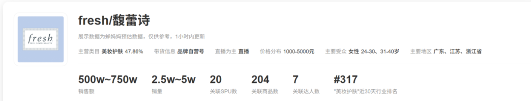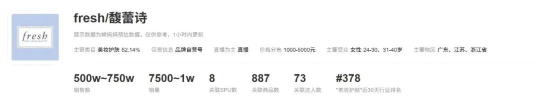目前,消费者购入馥蕾诗产品的主要渠道仍然是官店、专柜和免税店。蝉妈妈数据显示,馥蕾诗官方旗舰店占据了销售额的绝对大头,达人销售的前五名中仅有一位是达人。