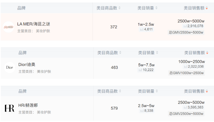 3月4日部分高端美妆品牌整体数据