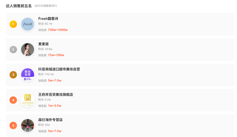 目前,馥蕾诗的主力红茶系列产品常态价位在700-1500元左右,高端线古源系列常态价位在2000-3000元。有报道显示,2025年,馥蕾诗抖音销量约10万至25万件,排名约340名。而最新(3月4日)的蝉妈妈数据预估,馥蕾诗近30日的销售额仍处于500-750万区间,远低于多数位于千万级别的高端美妆竞品——而这已经是品牌近日在三八大促中集中发力后的结果。